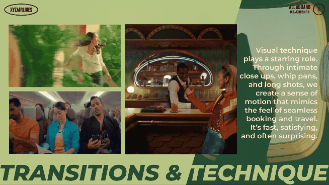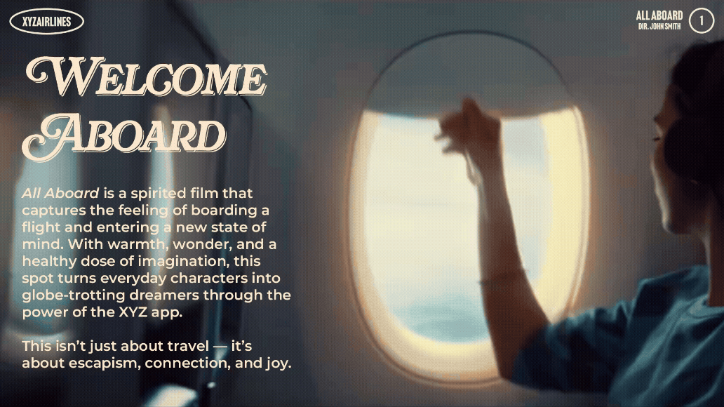 A treatment deck for a speculative commercial for XYZ Airlines’ travel app.